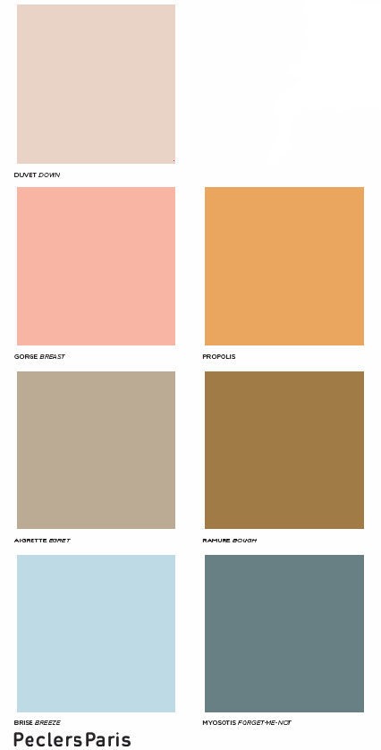 Para la próxima temporada primavera/verano 2019 Peclers nos propone su paleta cromática titulada “Grace” que juega con las combinaciones y los efectos de la luz, aportando un toque de frescura en tonos suaves y neutros. La gama está llena de colores naturales: tonos tierras, azules y anaranjados serán los protagonistas del diseño de interiores. Incluye básicos como el nude, el rosa chicle, cálidos marrones y azules ceniza.